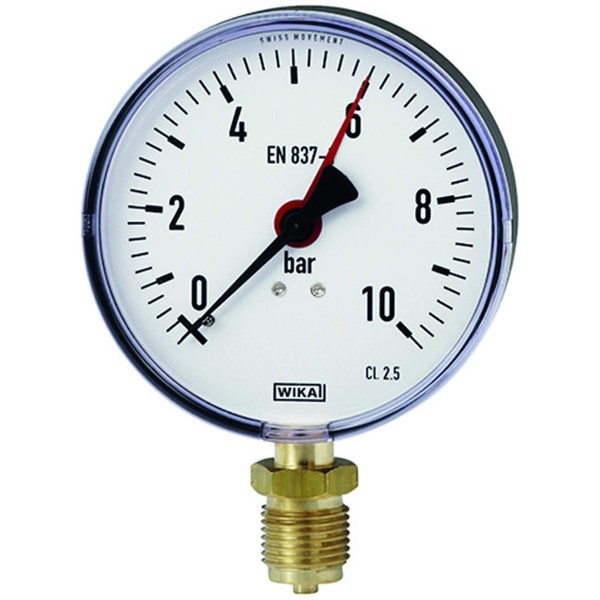 WIKA 9012575 Pressure Gauge, 0/10 Bar D = 100 1/2G Bottom without Filling Class 2.5 Plastic Type 111.10