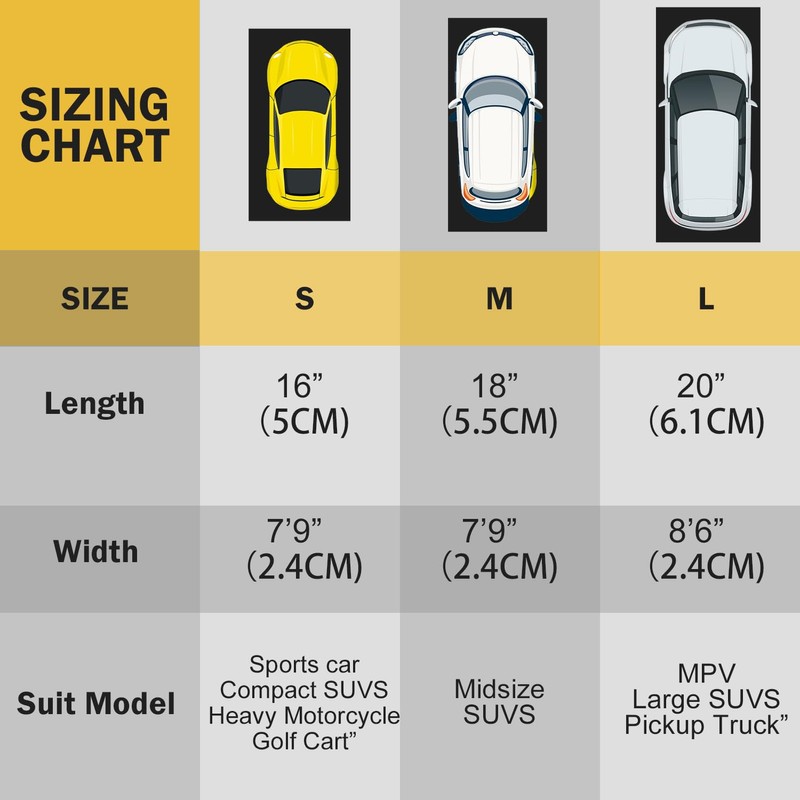 - 【Large Mat Covering】 Available in three size from compact 7'9" x 16' up to a large 8’6”x 20'. Our mat is perfect for most types of cars, SUVs, minivans and pickup trucks.