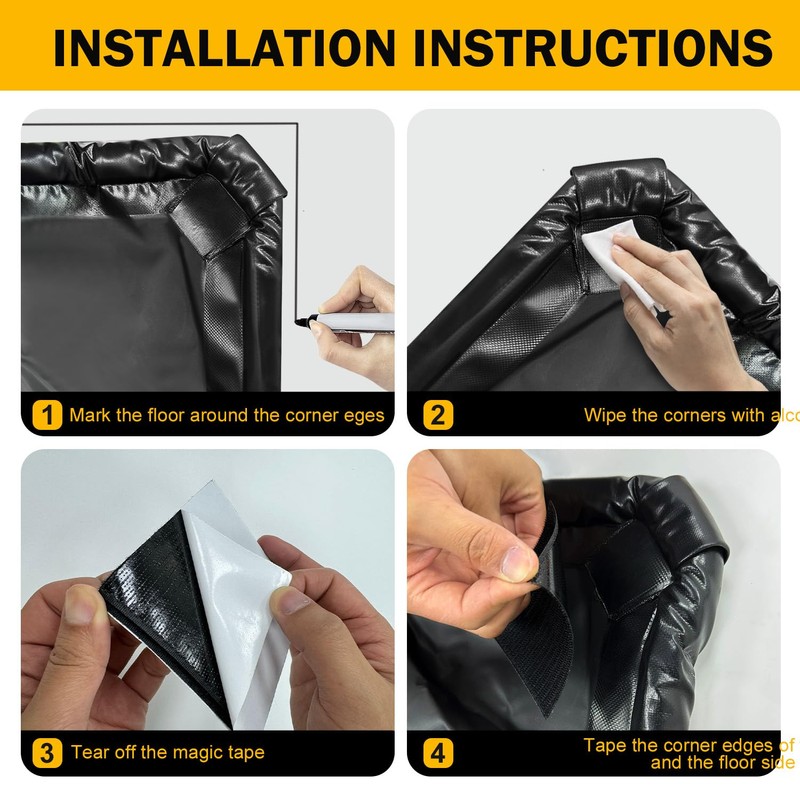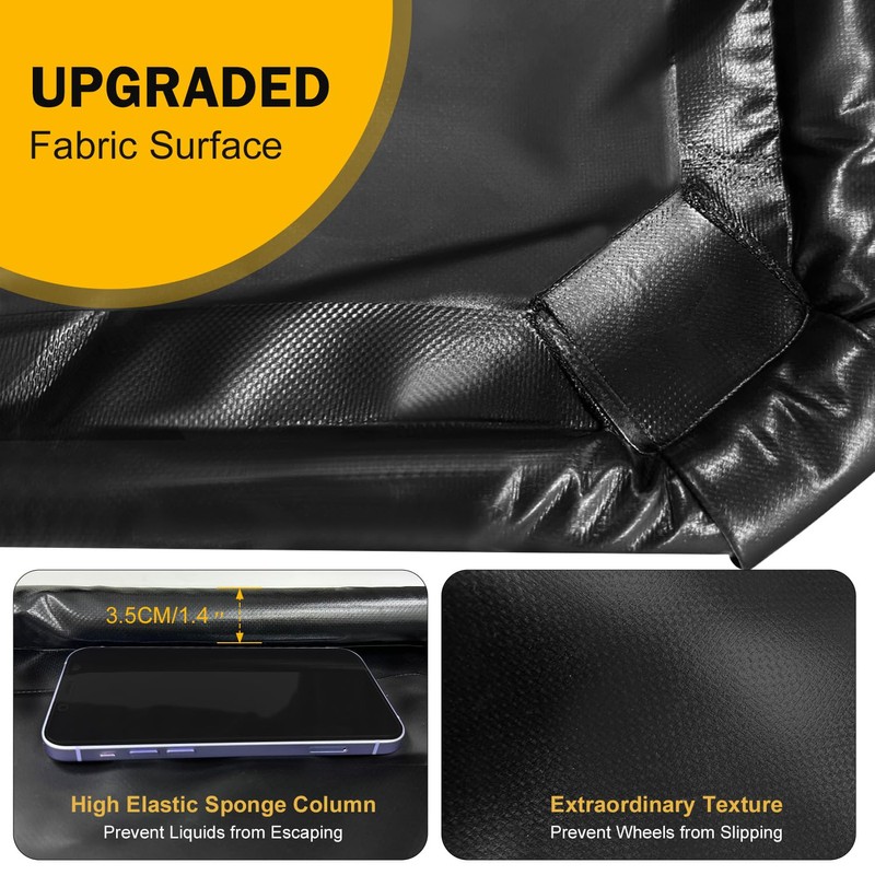 - 【Protect Garage Floor】 Water containment mat with high-elastic sponge edge provides protection to your garage floor against snow, slush, water, mud, and oil. This high density containment mat provides high load ratings and cushioning to avoid damaging the garage floor.
