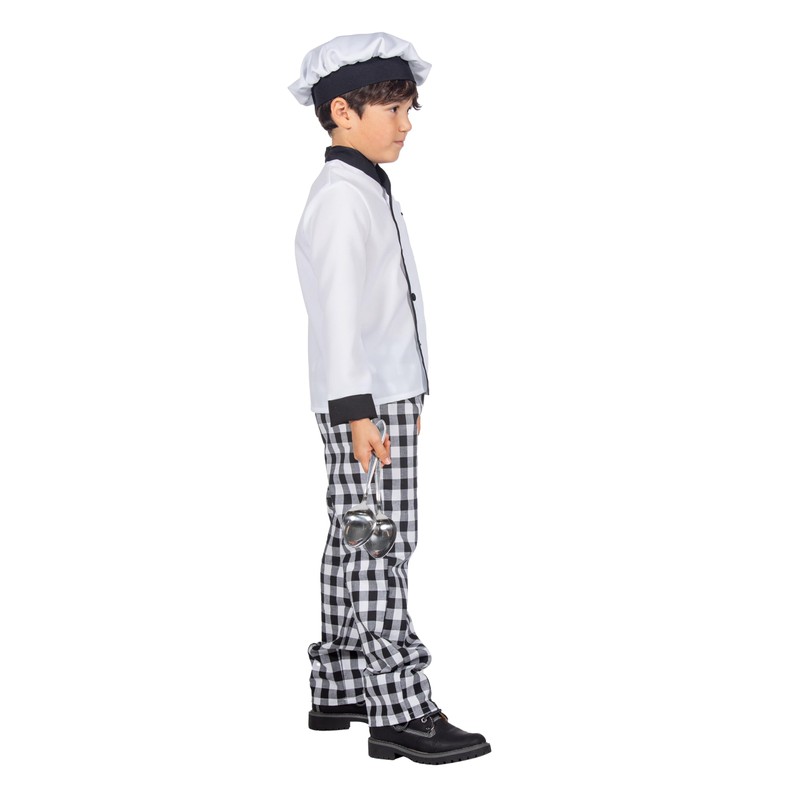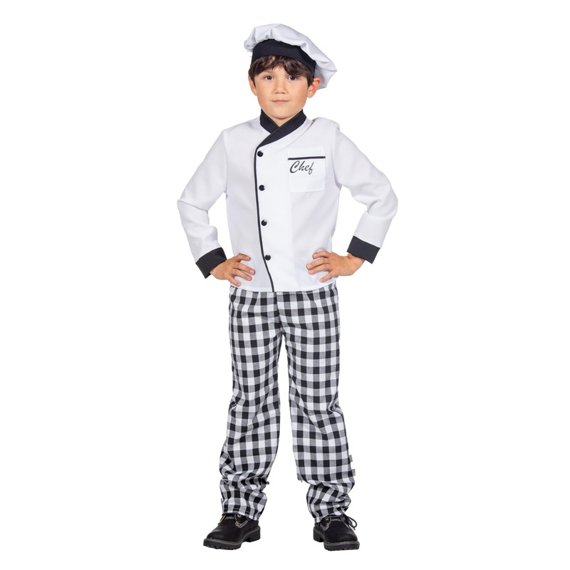 - This three-piece chef costume in size 164 consists of a shirt with long sleeves, trousers and a matching chef's hat