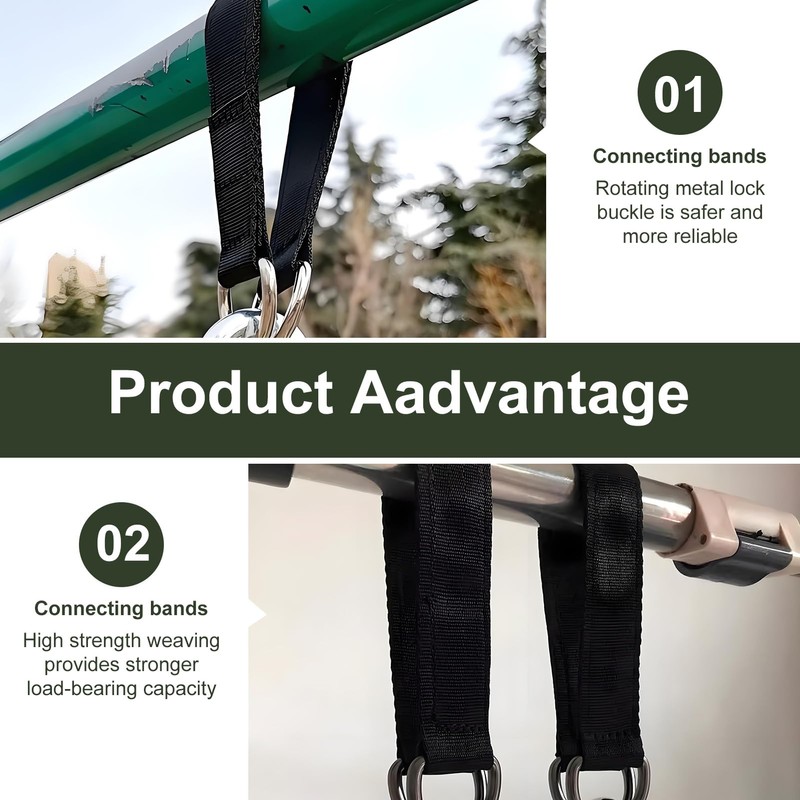 - High-quality material: the swing attachment is made of robust nylon strap and carabiners made of high-quality steel, which are rust-resistant, durable and weatherproof