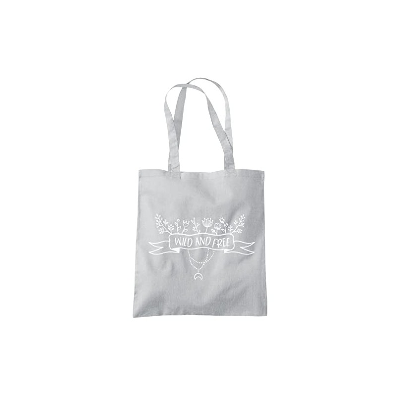 Wild and Free - Tote Shopping Bag - Crystals Moon Spiritual Boho One size grey