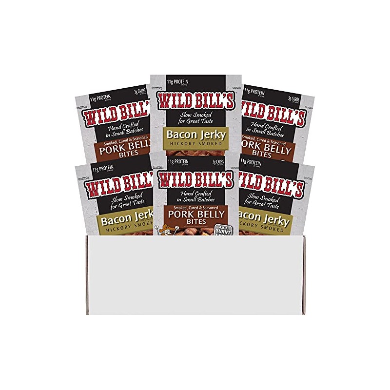 Wild Bill's 6-Piece Bacon Lovers Gift Box comes with three 3oz packs of Wild Bill’s Bacon Jerky and three 3oz packs of Wild Bill’s Pork Belly Bites. If you’re looking for a great gift for that bacon lover in your life, then Wild Bill's 6-Piece Bacon Lovers Gift Box will make the perfect gift.