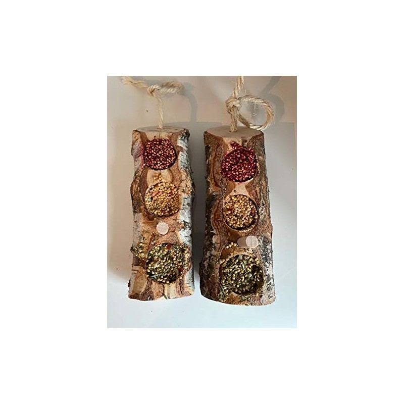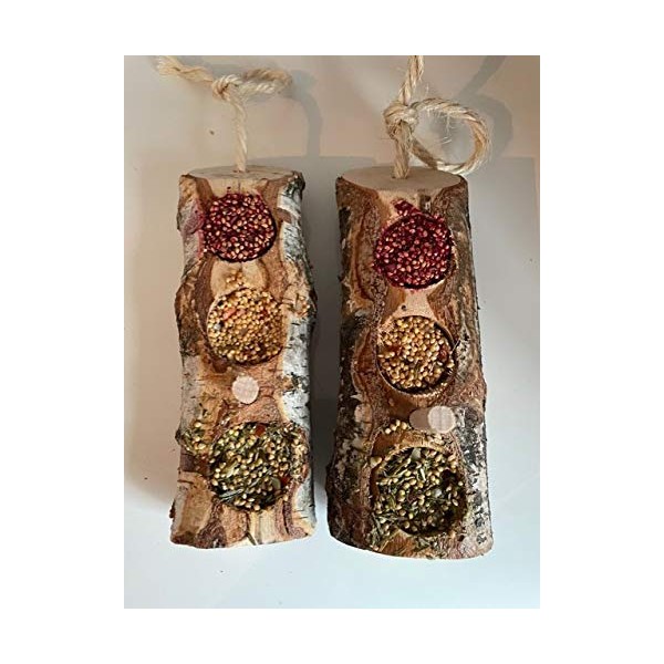 Wild Bird Log Feeder with Seeds and Perch (Pack of 2)