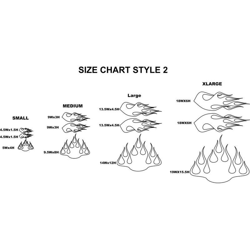- X-Large = Two decals - 18 inches wide x 6 inches high & One decal - 19 inches wide x 15.5 inches high