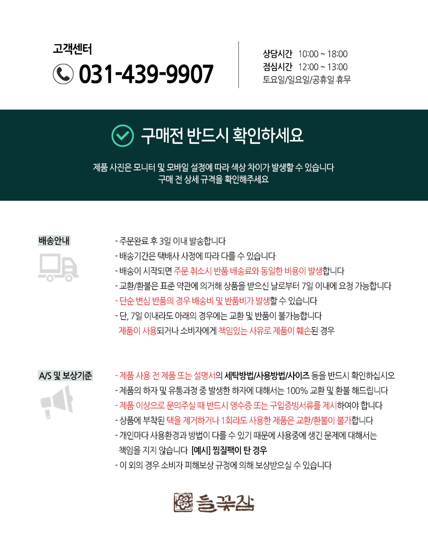 - A/S manager and phone number or consumer consultation phone number: Wildflower Jam 031-439-9907