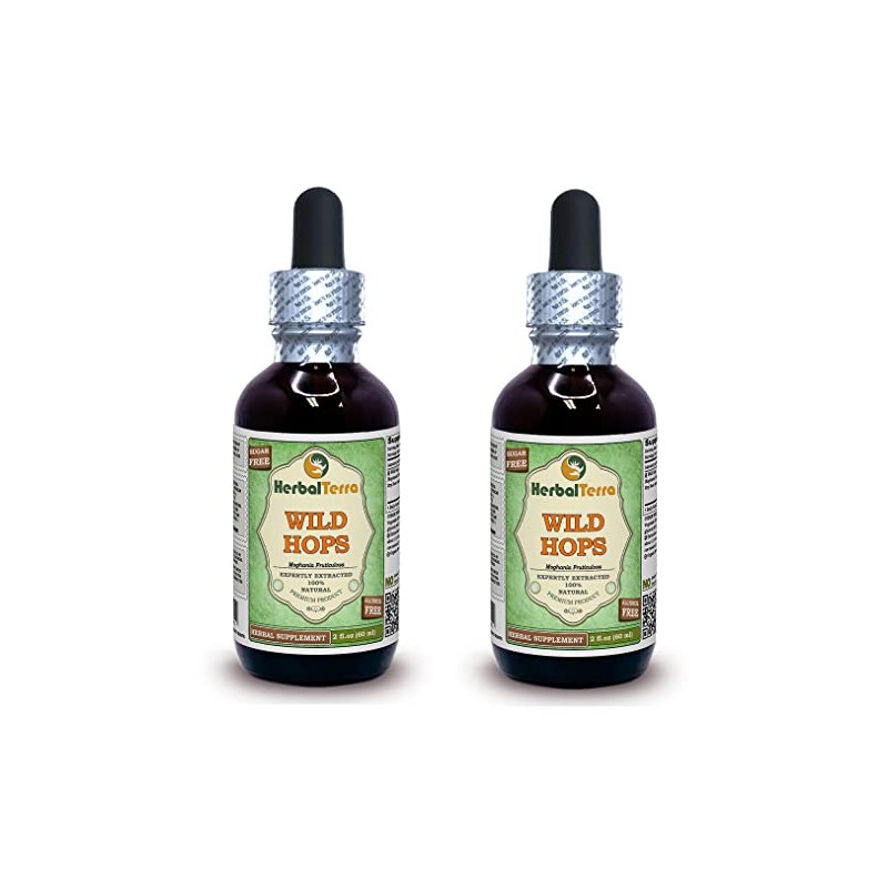 Wild Hops (Moghania Fruticulosa) Glycerite, Organic Dried Roots Alcohol-Free Liquid Extract (Brand Name: HerbalTerra, Proudly Made in USA) 2x2 fl.oz (2x60 ml)
