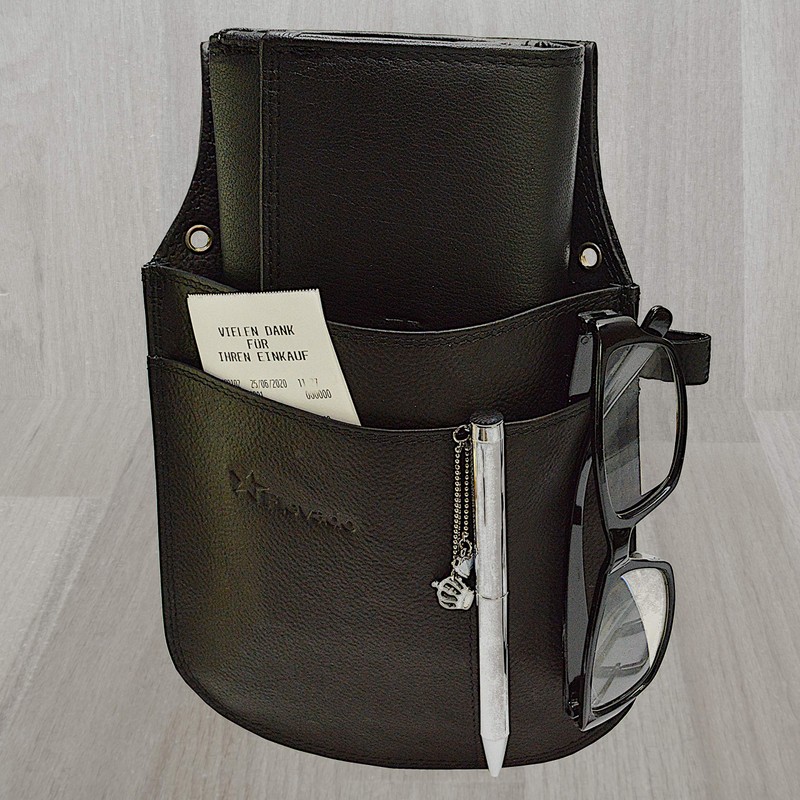 - Features: 1 main compartment for the waiter's wallet, 2 additional slip pockets for e.g. notepad or similar, 1 pen loop on the side, double stitching for more stability, genuine leather