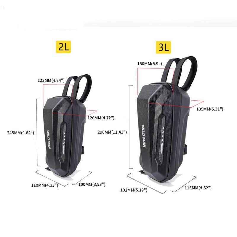 WILD MAN 2L or 3L Hard Shell Rainproof Scooter Storage Bag for Kick Scooters Folding Bike KickBoard Handlebar Bag MTB(GD9.3L)