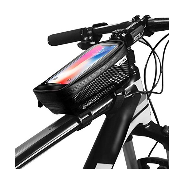 WILD MAN Hard Shell Touch Screen Phone Holder Type Bike Bag Waterproof for Road Mountain Cycling (Black,E2)
