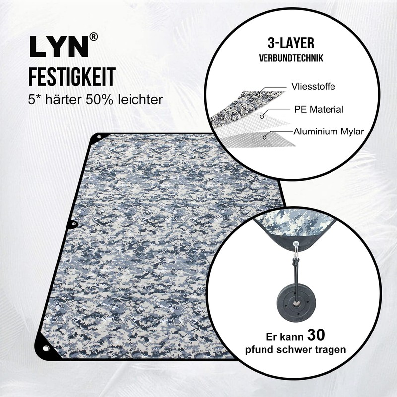 Wild Masquerade: LYN Heavy Duty Camouflage Transformative Emergency Survival Blanket / Tent XL, Thermal Space Mylar Waterproof with Stake for Camping, Army, Tarpaulin, Hiking, Snowfield and Survival