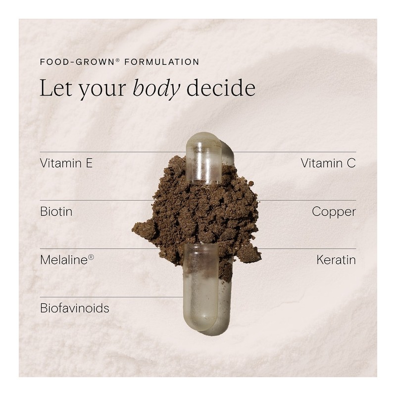 INGREDIENTS: Nutrient-enhanced Citrus pulp (providing Vitamin C and Bioflavonoids), Nutrient-enhanced yeast (providing Biotin), Yellow Pea (Pisum Sativum) preparation (providing Vitamin E), Nutrient-enhanced Lactobacillus Bulgaricus (providing Copper), Carrot concentrate (providing Beta-carotene), Keratin hydrolysate powder and Vegetable cellulose (capsule shell). May contain heat- treated Brown Rice powder.