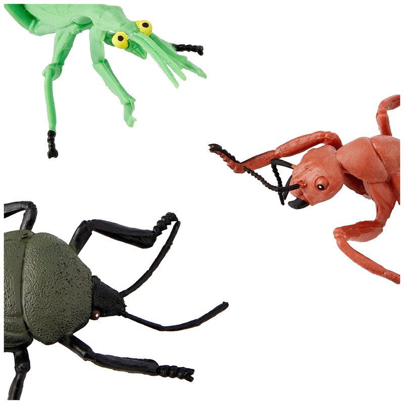 What you will have with this purchase is a Grasshopper, Fly, Butterfly, Ant, Prey Mantis and many different types of Beetles. Need a quick on the go toy to keep your child entertained on a long vacation or maybe need a fast and easy birthday gifts that are easy to hide. The uses are endless with the power of imagination. This product meets or exceeds all us safety requirements f963-96a) and European safety standards (EN71). All the figures are hand painted and Made of Phthalate and lead-free materials. Excellent to make bath time more fun or in need of some travel toys to entertain the kids in the back of the car on a long or short trip. Do not forget the possible STEM (Science, Technology, Engineering, and Mathematics) implications that can be used at home or in the classroom. Wild Republic has specialized in designing realistic stuffed animals and educational toys for kids since 1979. Ant 6 x 2 x 3 Grasshopper 6 x 4 x 2.5 prey mantis 6 x 4 x 3 Fly 4 x 3x 1.5 Stag beetle 6.5 x 4.5 x 1 Rhinoceros beetle 6 x 5 x 1.5 Blue Long-horned beetle 5.5 x 4 x 1.5 Stink Bug 5.5 x 4 x1.5 Red Rimmed Beetle 5 x 4 x 1.5