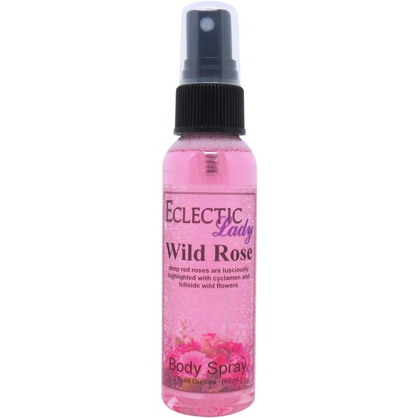 Our Wild Rose is the gorgeous, fresh essence of deep red roses are lusciously highlighted with cyclamen and hillside wild flowers. This fragrance is phthalate free. Our body spray adds a little bit of moisture to your skin along with a light fragrance. Our Double Strength formula contains double the fragrance of our original body sprays for people who like a stronger body spray. All of our products are made to order. To avoid leakage in transit, Eclectic Lady tapes all caps on our sprays and places each bottle into it's very own reclosable bag.