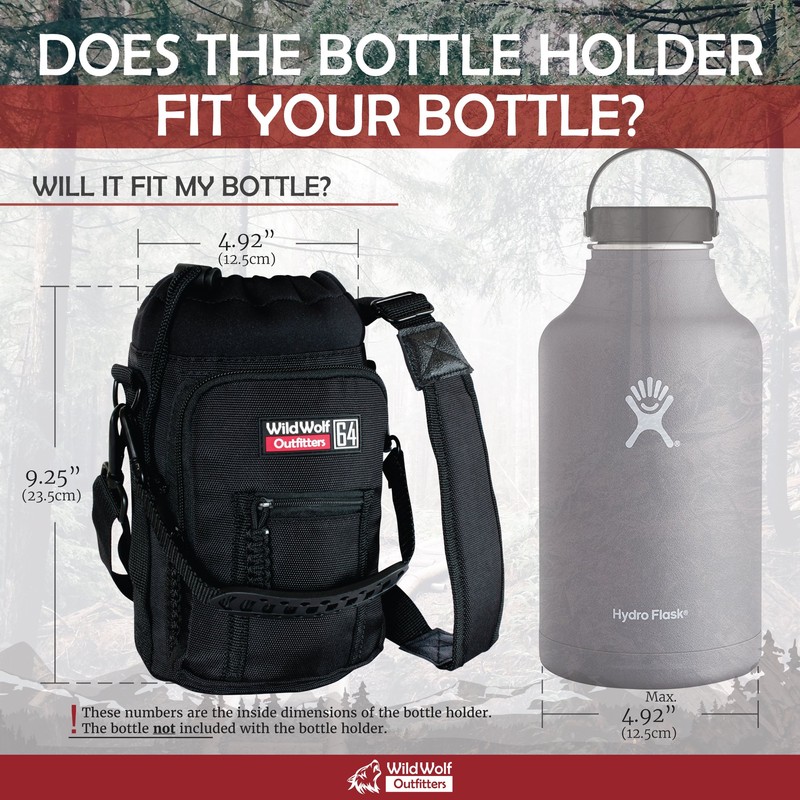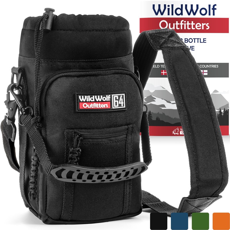Wild Wolf Outfitters Water Bottle Holder for 64oz Bottles Black - Carry, Protect and Insulate Your Best Flask with This Military Grade Carrier w/ 2 Pockets & an Adjustable Padded Shoulder Strap
