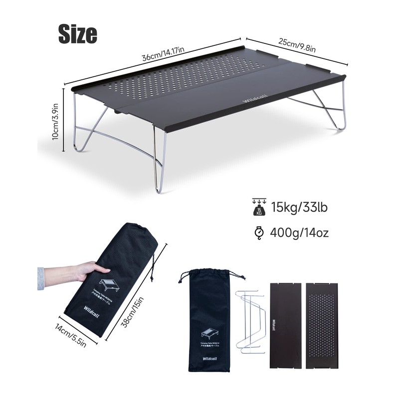 - Compact But Functional – Surface area: 14.17” × 9.8”, Height 3.9”. Low-profile design ensures better stability on uneven terrain, ideal for cooking, organizing gear placing small items