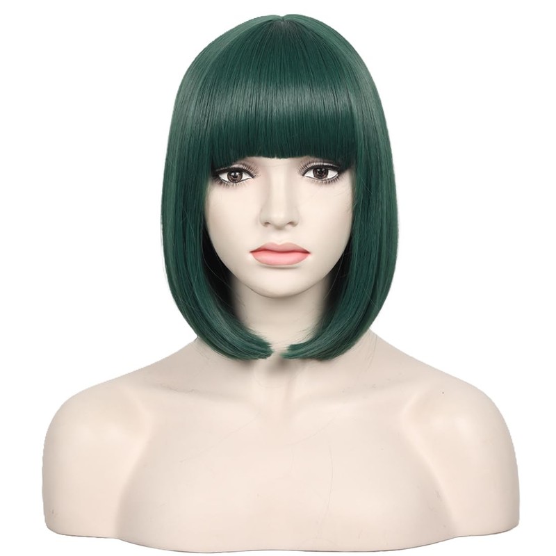 WildCos Short 12 Inches Straight Synthetic Cosplay Wig for Women (Dark Green)