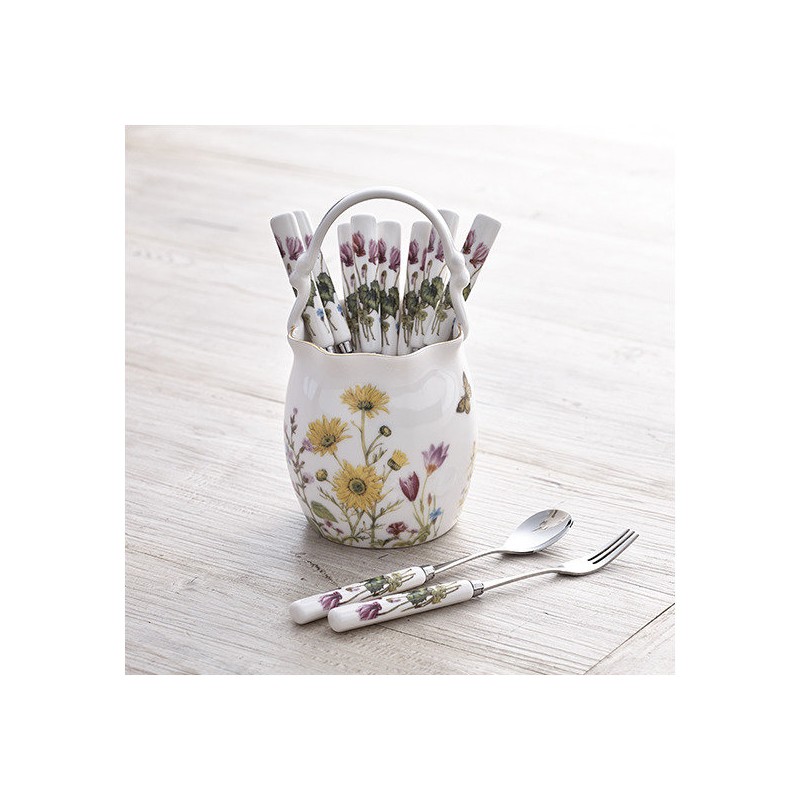 Wildflower wrinkle table (large) + ceramic teaspoon/fork 11P / 야생화 주름수반(대)+도자기 티스푼/포크 11P