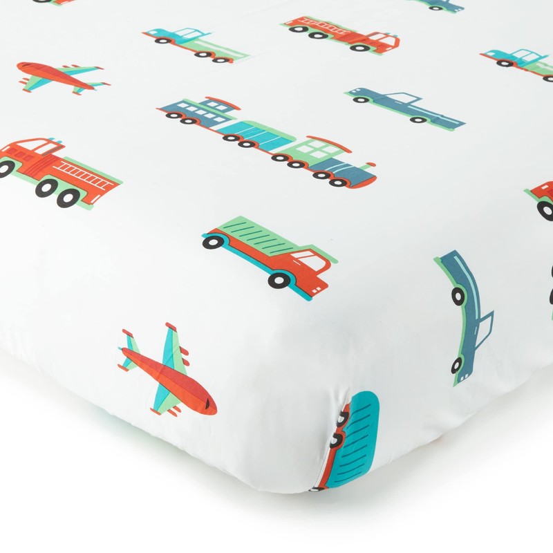 Wildkin Kids 100% Cotton Toddler Sheet Set for Boys & Girls, Bedding Set Includes Top Sheet, Fitted Sheet, Standard Pillow Case, Bed Sheet Set for Cozy Cuddles (Transportation)