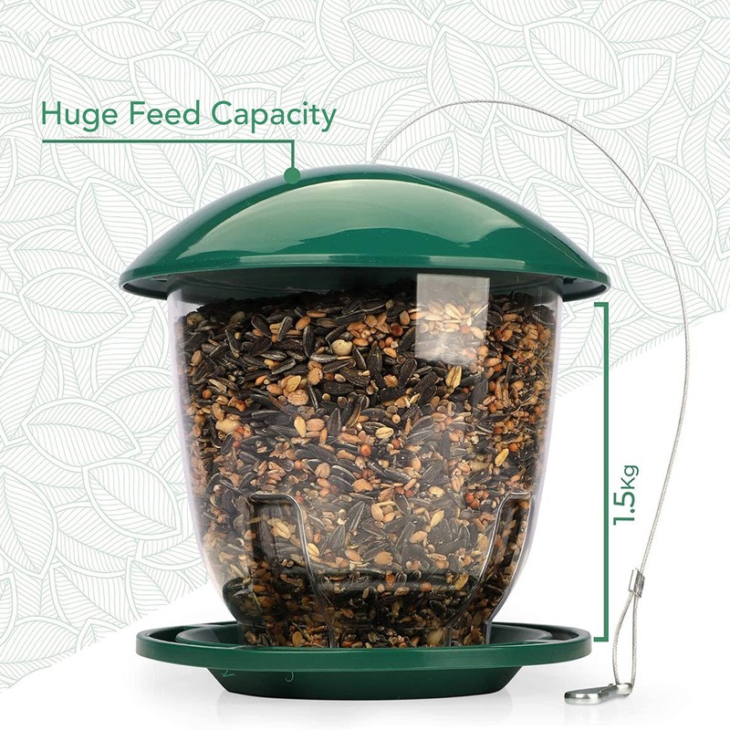 - 🍃 ROBUST: The XXL bird feeders have a feed capacity of up to 4 Liter. The metal approach ring offers several wild birds a common feeding place. The rain-repellent roof protects bird feed from moisture and dirt.