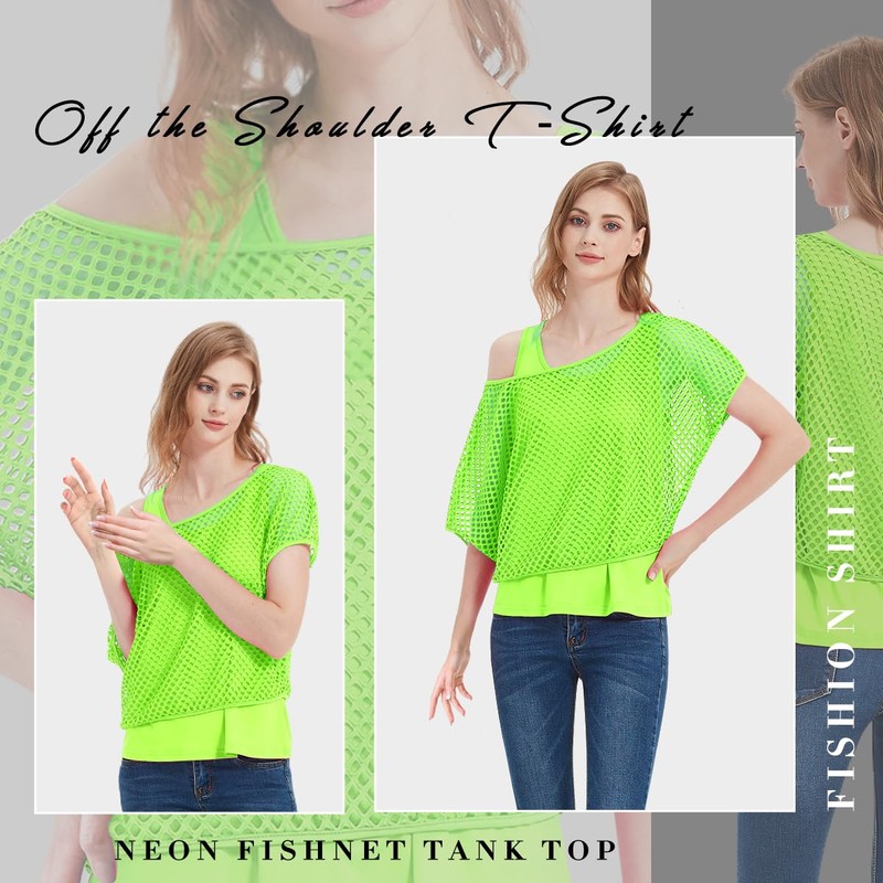- Available in 4 sizes: Our ‘80s and ‘90s neon clothing is available in 4 sizes (M, L, XL, XXL). Please confirm the size before purchasing. Our fishnet T-shirt and sleeveless top come in European sizes (see picture in link for details). The fabric is soft and comfortable with plenty of stretch to ensure a perfect fit for women of different sizes (suitable for most women and girls). Choose the right size for yourself.