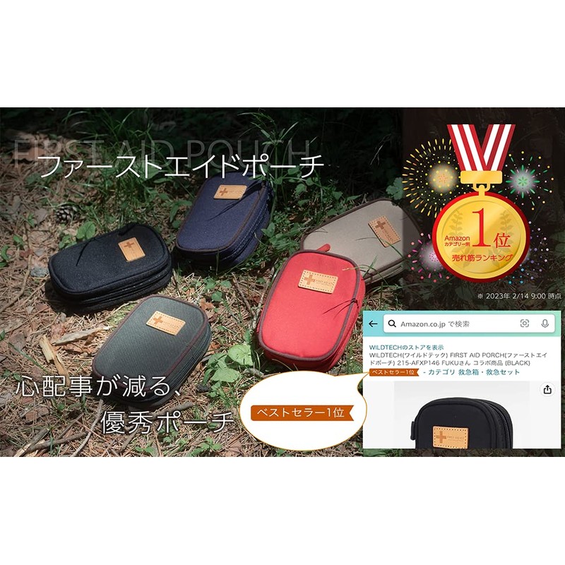 WILDTECH(ワイルドテック) FIRST AID POUCH(ファーストエイドポーチ) CORDURA(コーデュラ)ファブリック 215-AFXP146 [YouTuber「FUKU」コラボ商品] アウトドア youtuber fuku wildtech 救急ポーチ (OLIVE(KHAKI))
