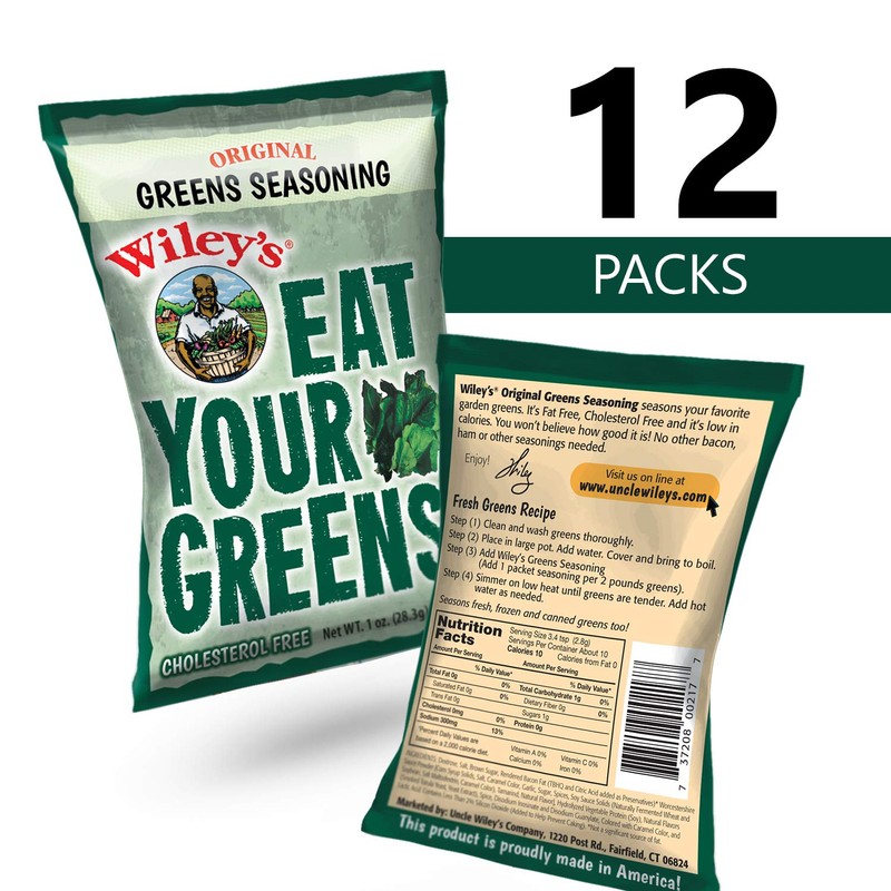 Wiley�s Green Seasoning, 12 Packets, Fresh Herbs and Spices for Collards, Spinach, Kale, Turnip and Mixed Greens, or Soup and Stew, Ham and Bacon Flavored Blend