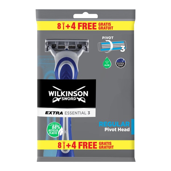 Wilkinson Sword - Disposable Razor Extra 3 Essentials - Razor with 3 Blades fxfcr Men - Pack of 8 Razors + 4 Free