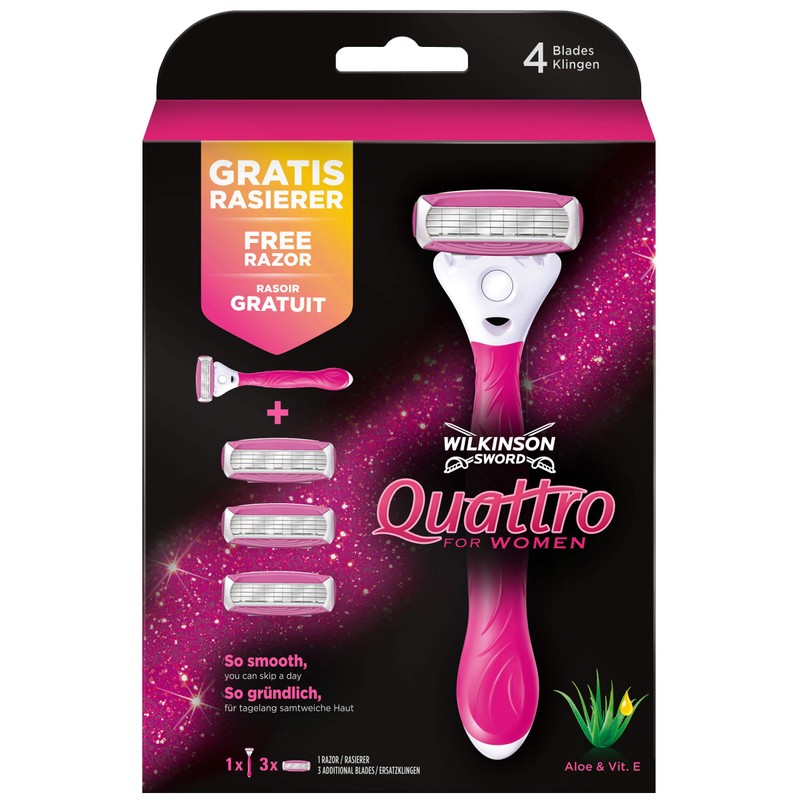 Wilkinson Sword Quattro for Women Razor Blades 3 + 1 Free Handle Promotional Kit