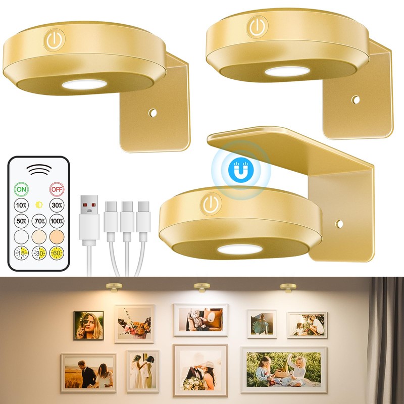 - 🥰[3-Pack Rechargeable Picture Lights for wall ]:This is a portable, rechargeable picture light with a built-in battery. It offers up to 8 hours of continuous use on the brightest setting. The picture light also features a 3-in-1 charging system that allows you to charge up to three lights simultaneously