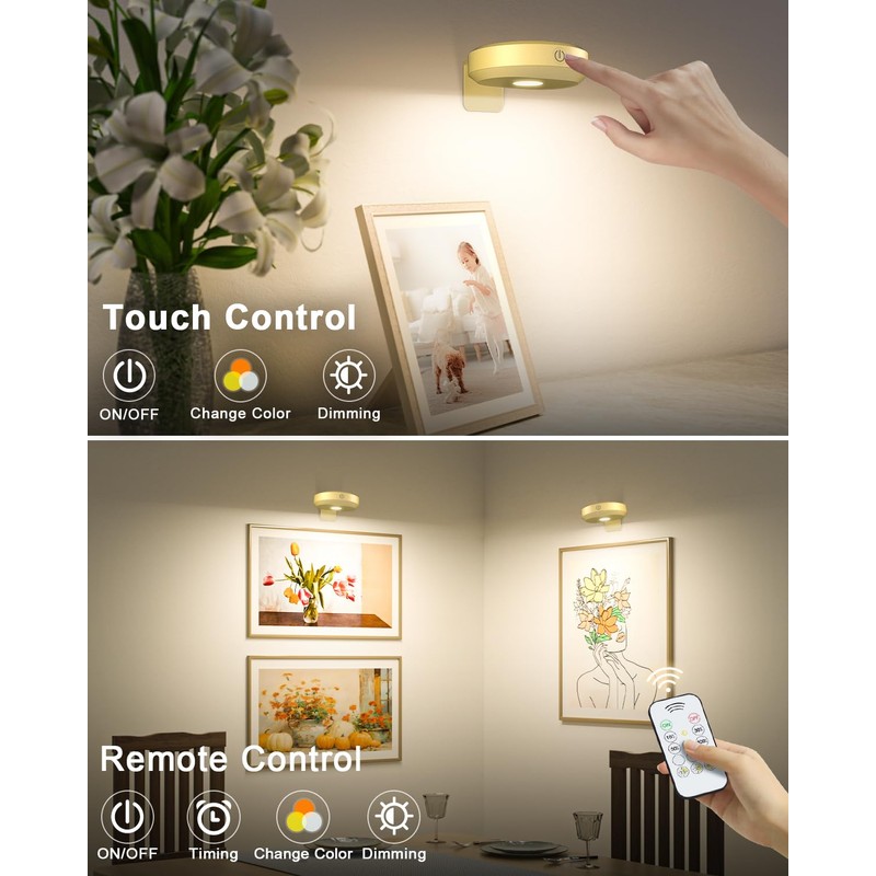 - 🍒[2 Control Methods & Timmer Function]: This 3-Pack Wireless Battery Operated Picture Lights features two control methods and a timer function. You can control the light using the built-in touch controls or the included remote control. The timer function, with options for 10, 30, and 60 minutes, allows you to set the light to automatically turn off after a specific period, providing convenience and energy efficiency.