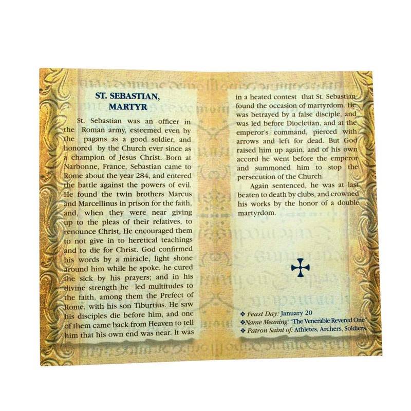 William J. Hirten Deluxe Catholic Holy Card with Traditional Prayers (Saint Sebastian)