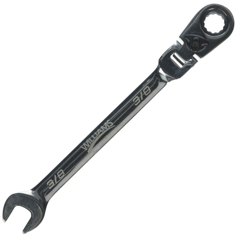 Williams JHW1212RCF Flex-Head Reversible Ratcheting 12-Point SAE Combination Wrench, with High Polish Chrome Finish - 3/8-Inch