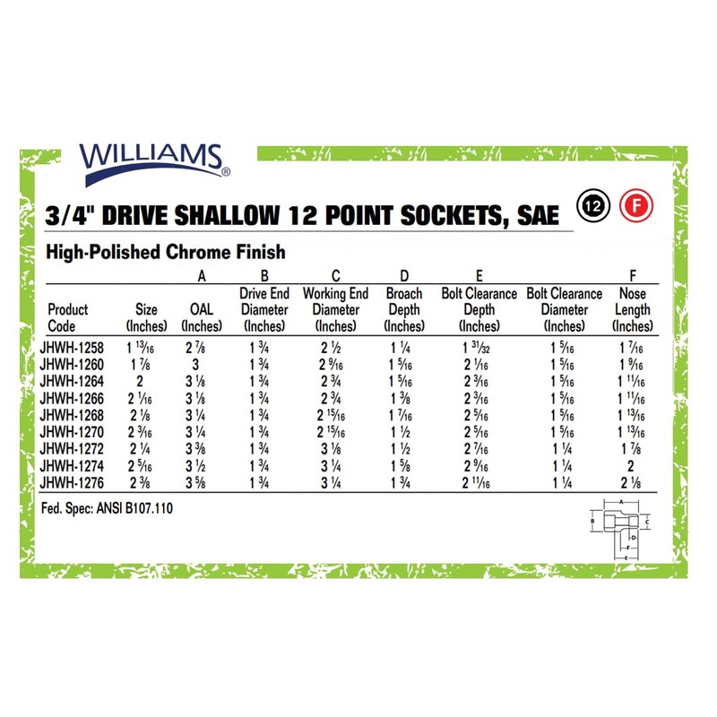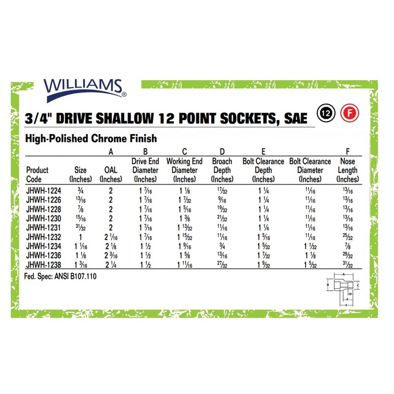 Williams H-1254 1-11/16-Inch Shallow 12 Point Socket