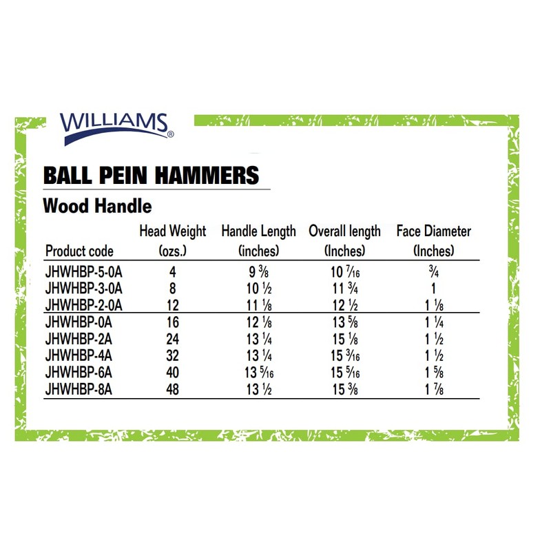 Williams JHWHBP-2A 24-Ounce Ball Pein Hammer - Hickory Handle