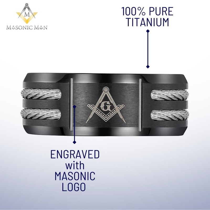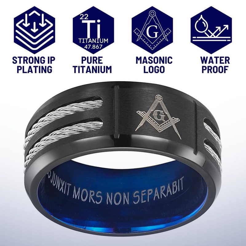 Willis Judd MasonicMan Mens Titanium Freemason Masonic Ring Latin Engraving Inside Size 8 Style 1, Non-Precious Metal, No Gemstone
