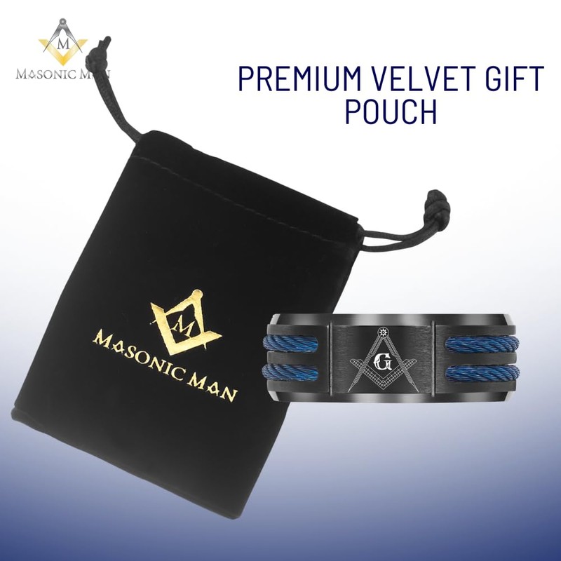 - MASONIC SYMBOL CENTERPIECE - with Double Rope Wire Inlay. COMES in our Masonic Velvet Pouch.