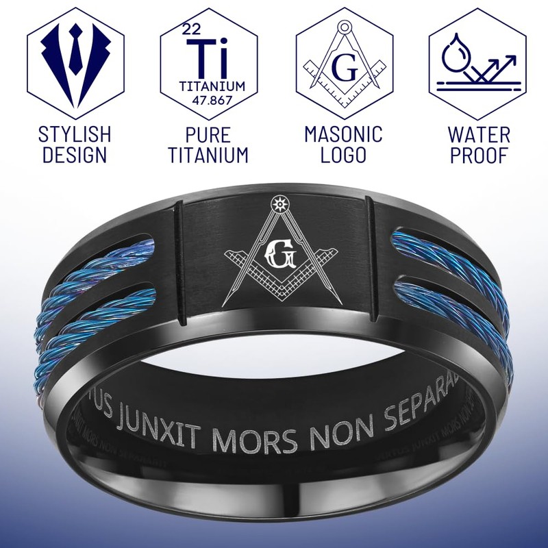 Willis Judd MasonicMan Mens Titanium Freemason Masonic Ring Latin Engraving Inside Size 8 Style 5