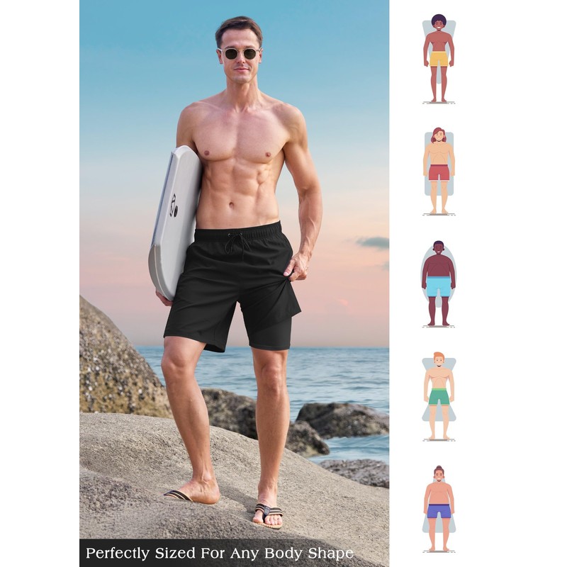 Willit Men's Swim Trunks Swim Shorts Quick Dry Beach Board Shorts Compression with Pockets Black 3XL
