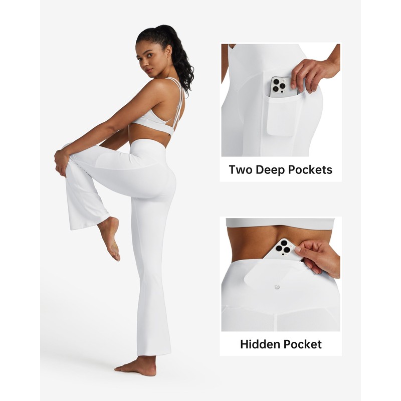 Willit Women's Flare Leggings Crossover Yoga Pants High Waist Bootcut Workout Leggings with Pockets 29" White M