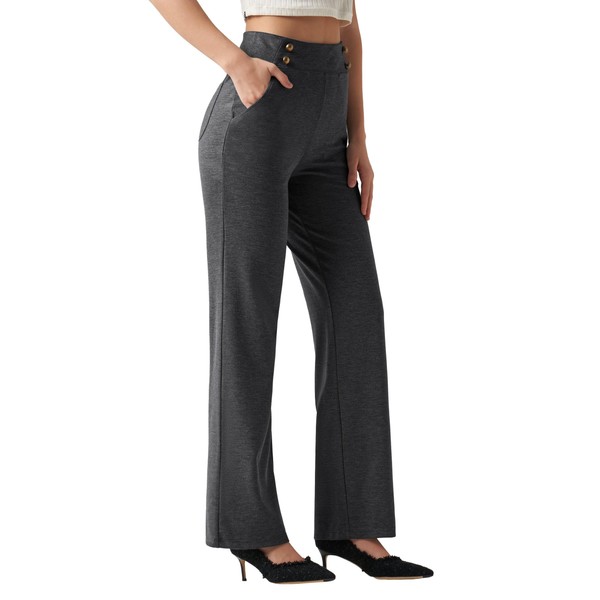 Willit Women's Wide Leg Dress Pants High Waisted Stretch Work Pants Office Business Casual Slacks Pockets Petite Charcoal Dark Grey M