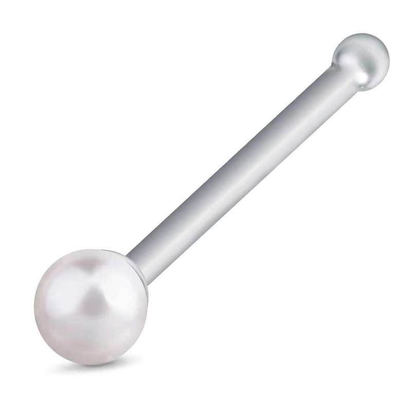Willys Jewellery Piercing Ear Piercing Nose Piercing Thin 925 Sterling Silver with White Freshwater Cultured Pearl for Women and Girls, Sterling Silver