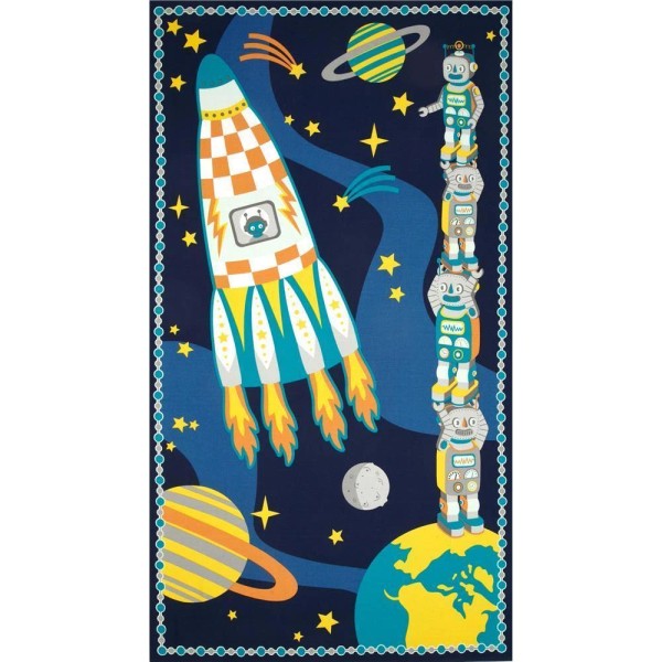 Wilmington Prints "Atomic Bots" Robots in Space Wall Hanging/ Quilt Cotton Fabric Panel