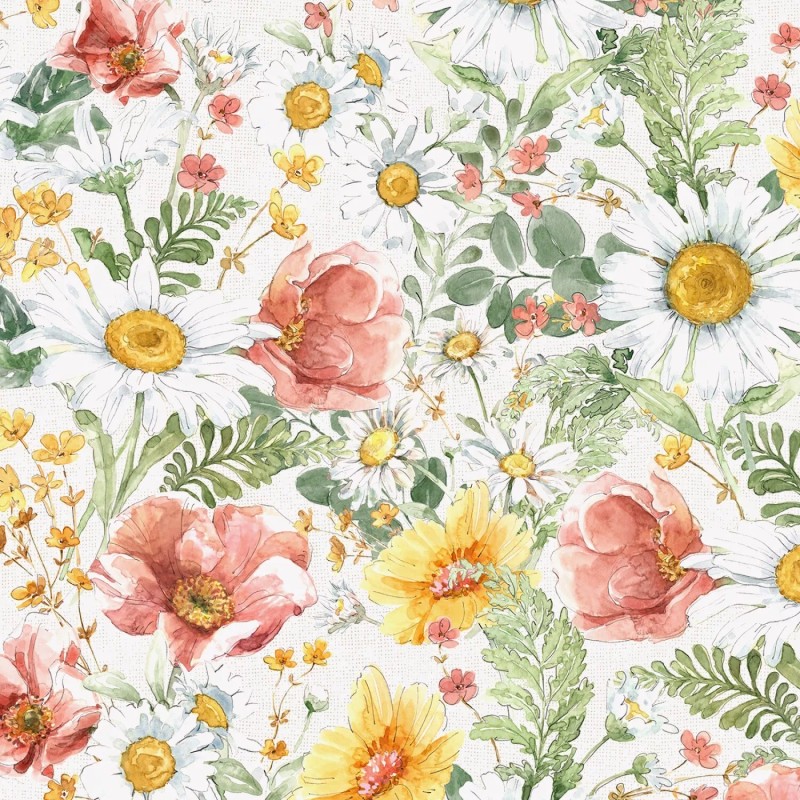 FABRIC: Daisy Days, designed by Beth Grove for Wilmington Prints, invites you into a world of timeless charm, where daisy florals and paisley dance together in soft and dusty peachy-pinks, greens, and ivory/white grounds. The daisy floral prints in this collection capture the joy of walking through a garden in full bloom-petals unfurling, colors blending seamlessly. Soft watercolors lend an ethereal quality to the blossoms, making them feel like a painter's dream. Intricate paisley swirls and teardrop shapes intertwine, creating a sense of movement and sophistication. Let your creativity bloom, and immerse yourself in the enchanting world of Daisy Days.