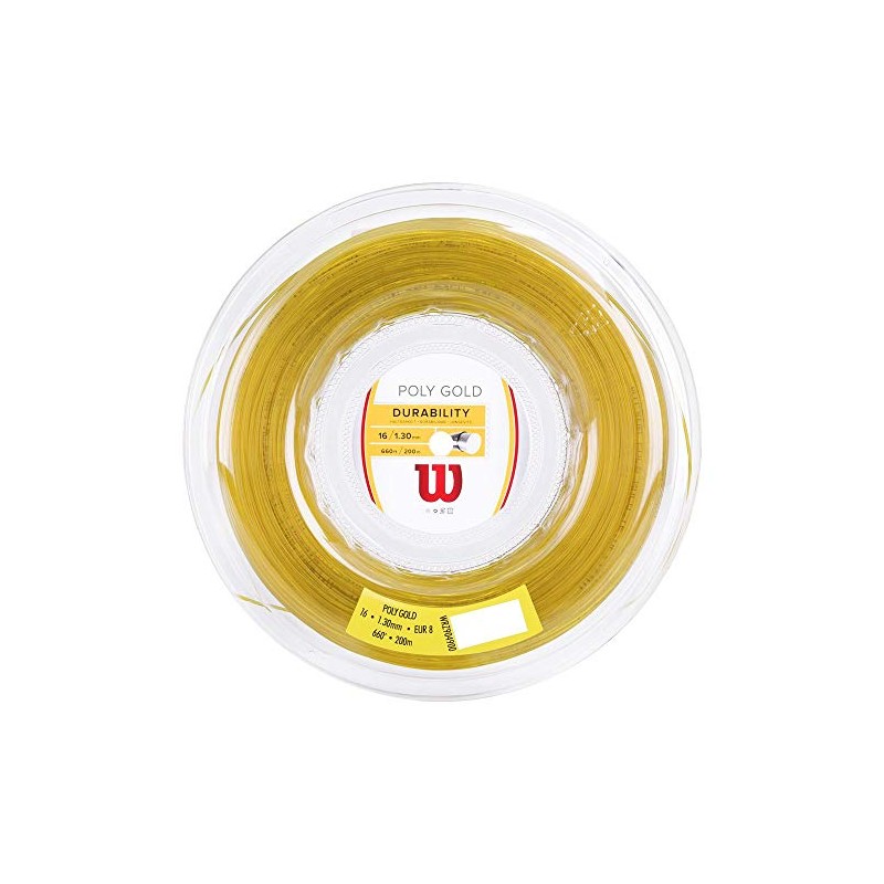 - Contents: 1x Wilson Tennis String Roll, Poly Gold, Length: 200 m, Diameter: 1.3 mm, Gauge: 16, Material: Polyester, Colour: Orange