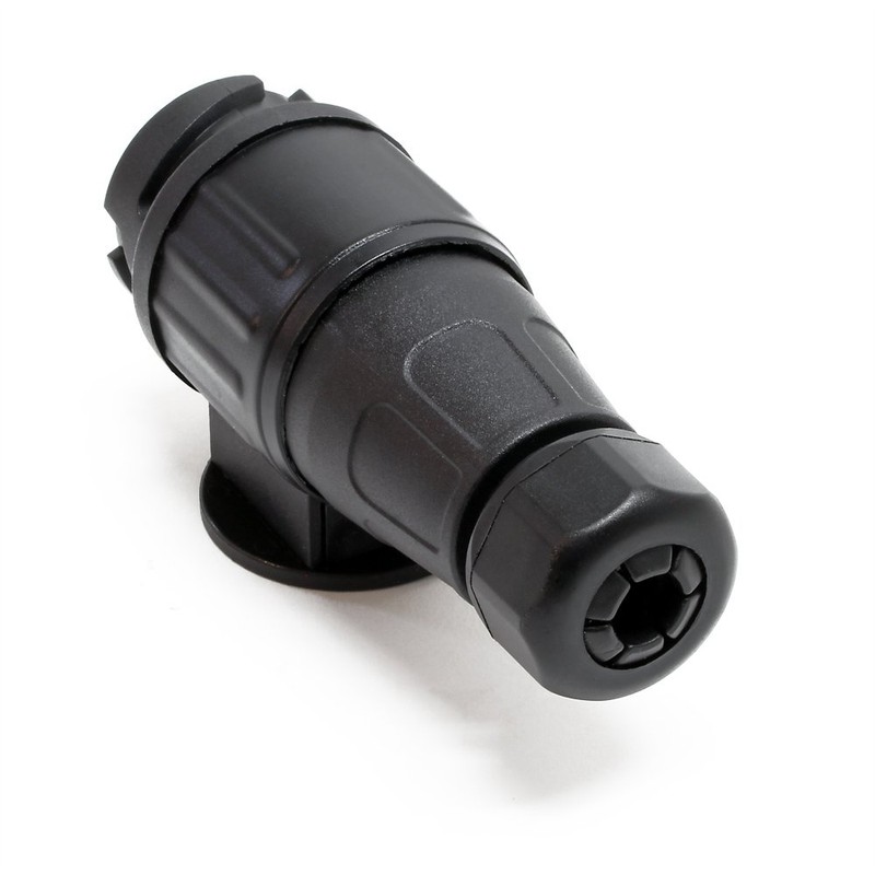 To ensure that the trailer and its lighting are supplied with enough power, this 13-pin trailer plug is used. With the power connections, different functions can be brought to work. These include the brake lights, left and right direction indicator, rear fog light, right and left tail light and reverse light. Other poles are ground (3 pieces), general power, charging line and a free pole.