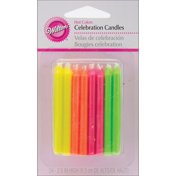 Birthday Candles 2.5" 24/Pkg-Hot Colors WILTON-Celebration Candles: Hot Colors. Add fun to any occasion with Wilton's novelty candles. This package contains twenty-four 2-1/2 inch candles in neon colors (6 each of 4 colors). Imported.