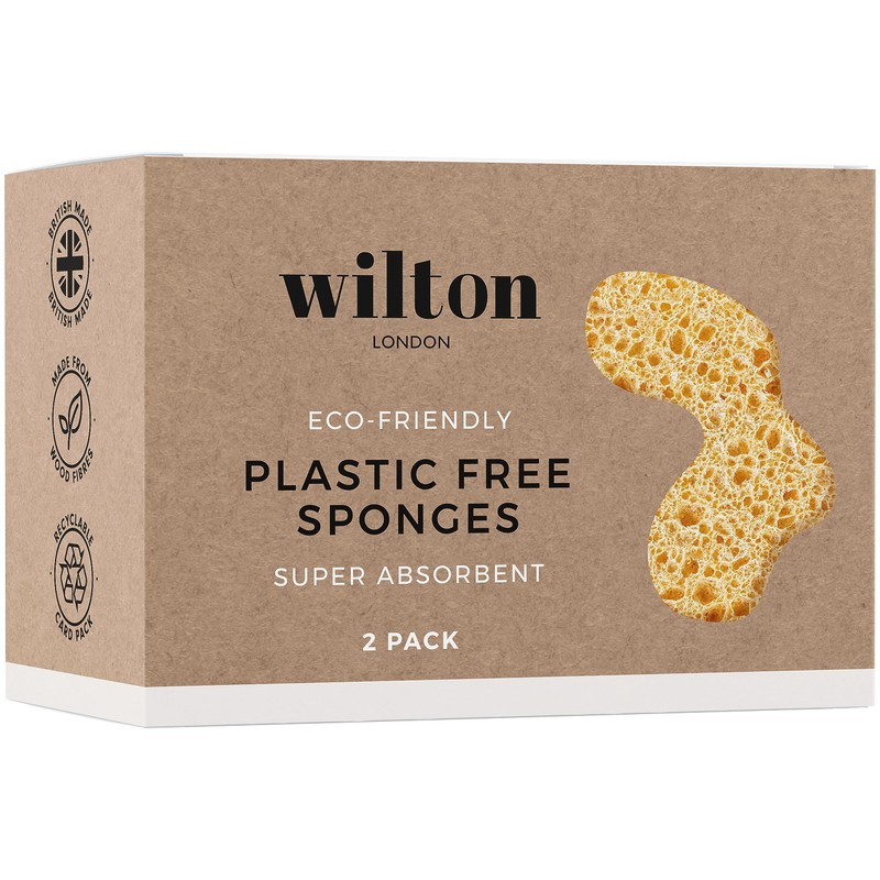 Wilton London Eco-Friendly Sponge - Plastic Free and Biodegradable - Made from Wood Pulp - Super Absorbent - Multi-Purpose - Twin Pack (Pack of 2)