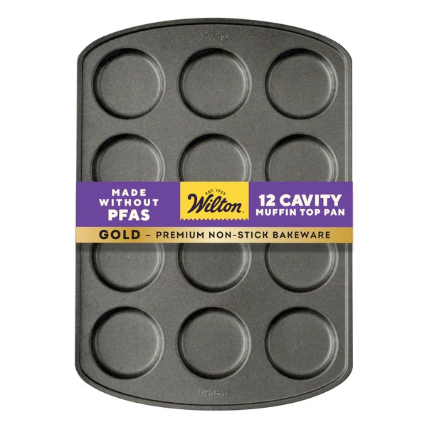 The best part of a muffin is the top. With this non-stick baking pan, you can now make just the best part. But you don't have to stop there, use it to cook eggs, cornbread, large drop cookies and even brownies. This multi-use baking pan will be a staple for home bakers everywhere. From cloud bread to mini taco shells this versatile pan will get a lot of use in your kitchen. 16 x 11 in. 12 cavities, cavity size: 3 in. dia. x .5 inches. Wilton helps families celebrate! We inspire the joy of creativity in everyone, everywhere, every day. Since 1929, Wilton has been helping home bakers and cake decorators all over the world create sweet treats and beautiful desserts by giving them the tools to make it fun and easy. The Wilton name is known around the world for cake decorating, candy making, bakeware and party products. At Wilton, we're passionate about bringing the love of baking and decorating to every consumer.