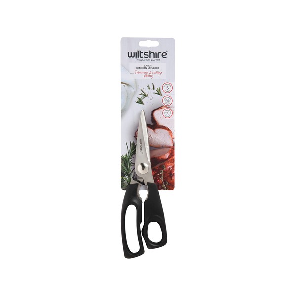 - 1 x Wiltshire Laser Plus Kitchen Scissors, Kitchen Shears, Stainless Steel blade with Plastic Handle, Right & Left Handed, 21.5x7x2cm, Black